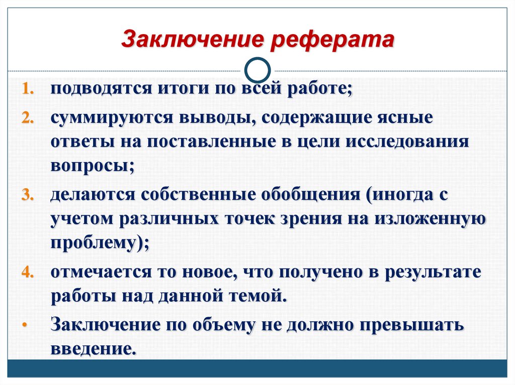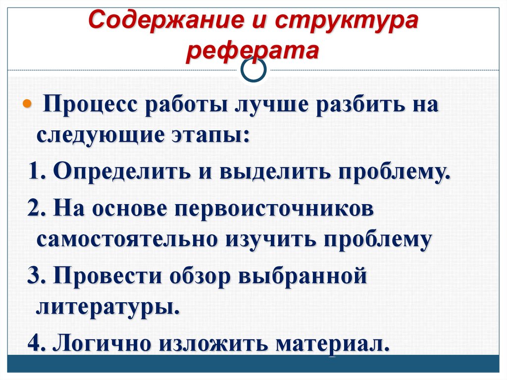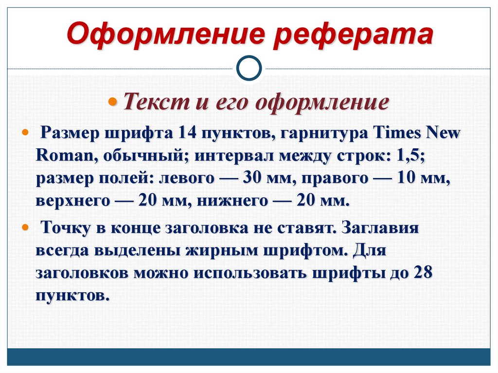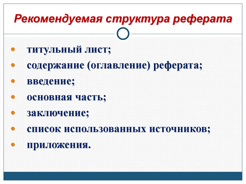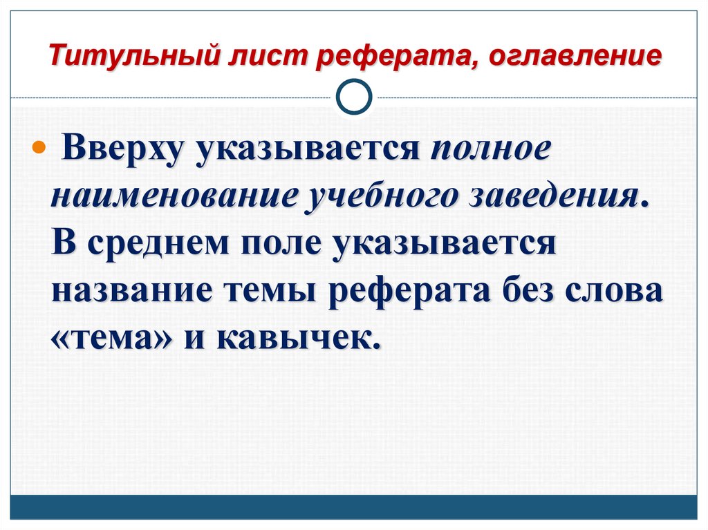 Титульный лист реферата, оглавлениеВверху указывается полное