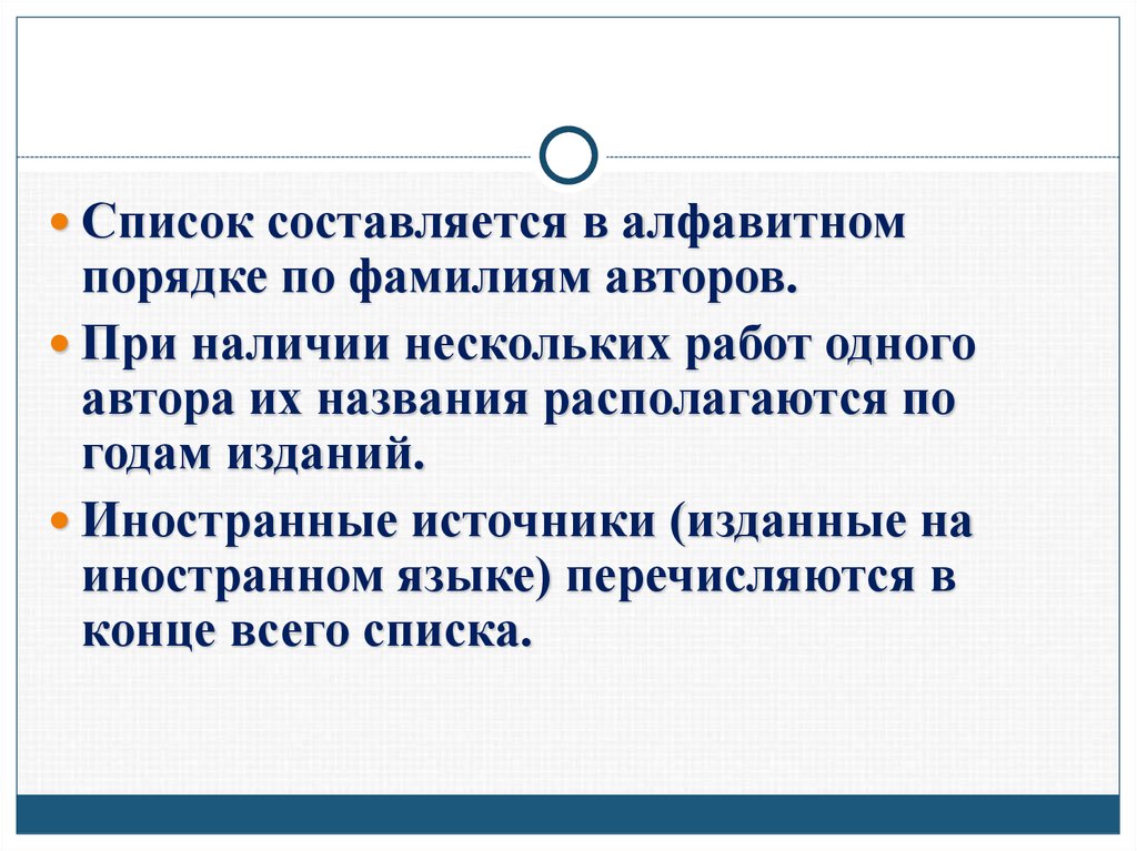 Список составляется в алфавитномпорядке по фамилиям авторов.