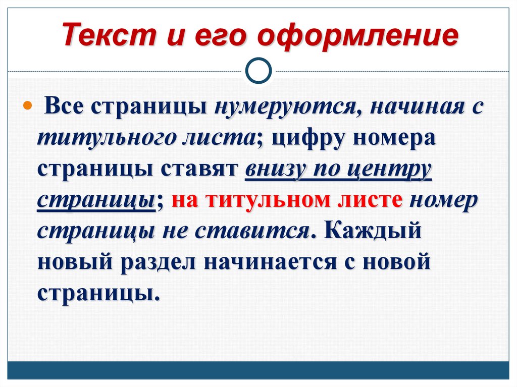 Текст и его оформлениеВсе страницы нумеруются, начиная с