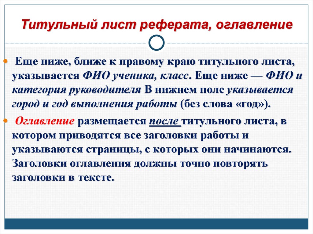 Титульный лист реферата, оглавлениеЕще ниже, ближе к правому краю титульного листа,