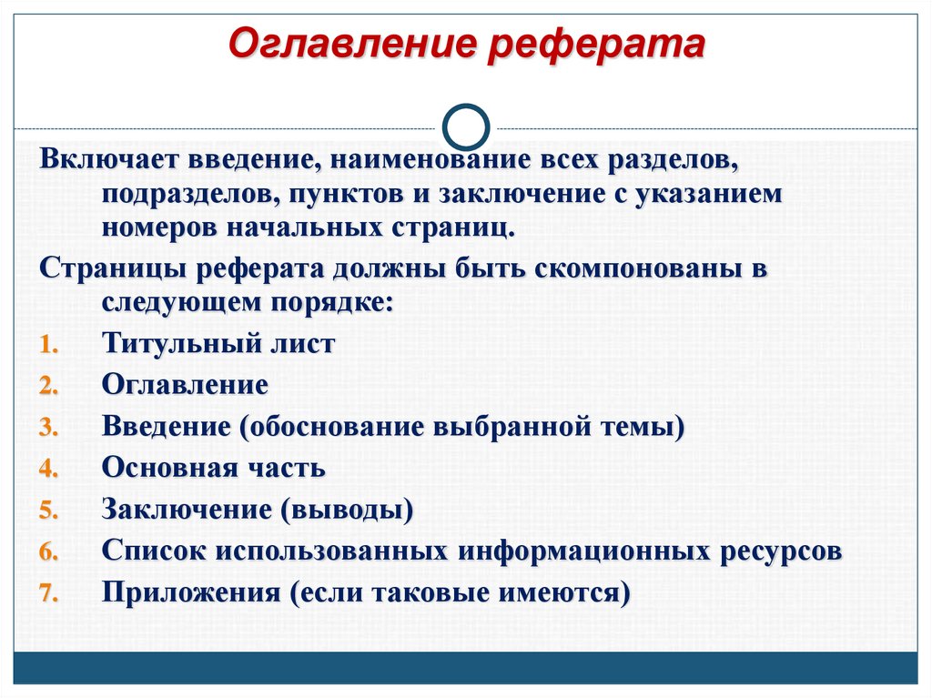 Оглавление рефератаВключает введение, наименование всех разделов,