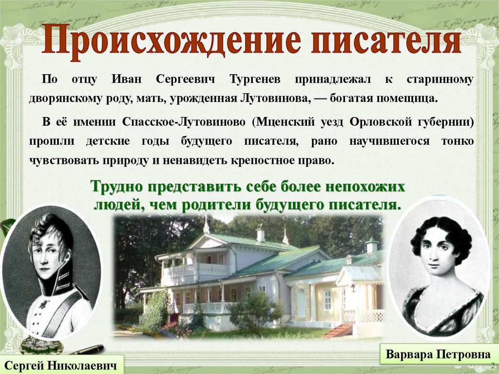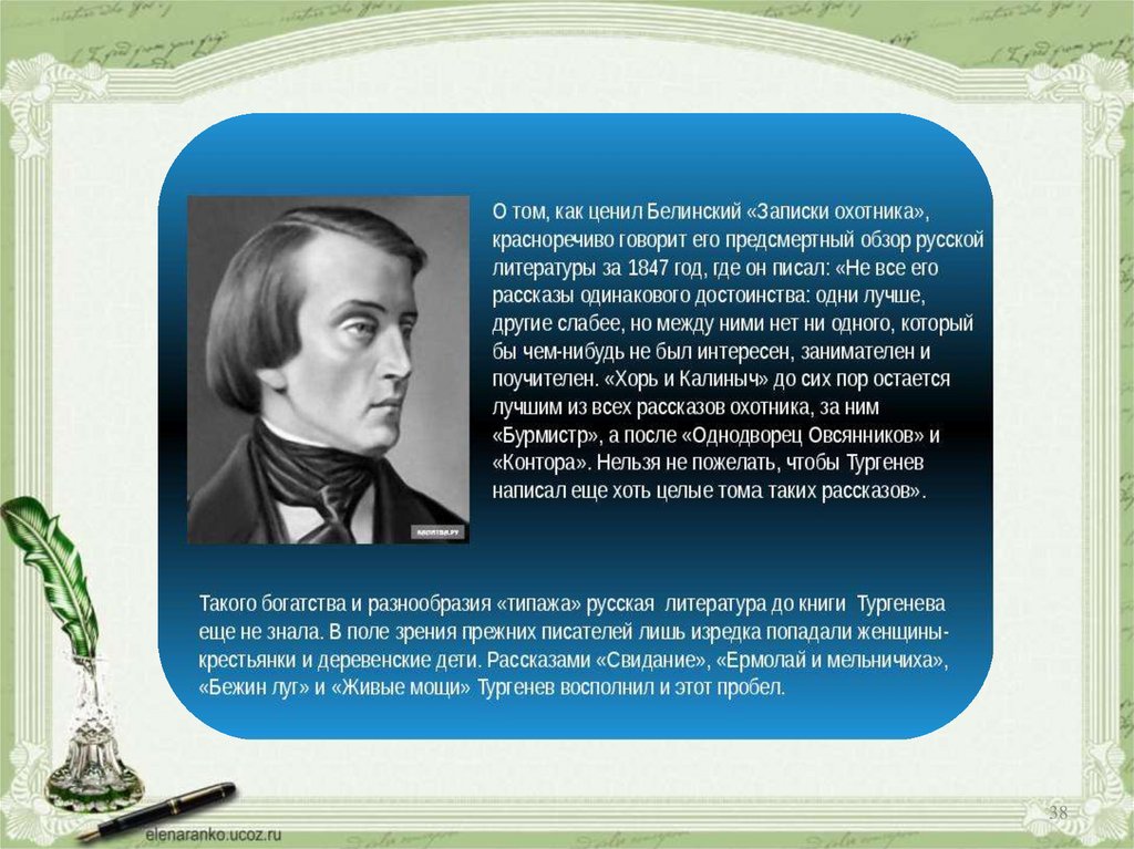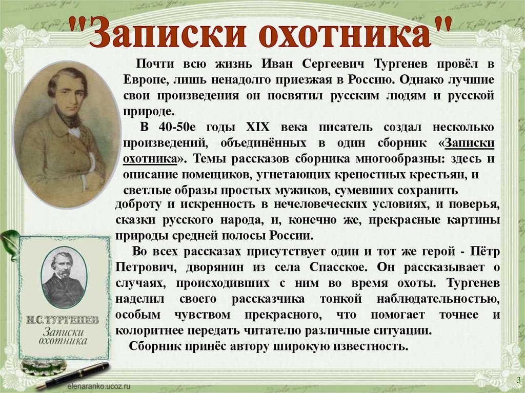 Почти всю жизнь Иван Сергеевич Тургенев провёл вЕвропе, лишь ненадолго приезжая в Россию. Однако лучшие