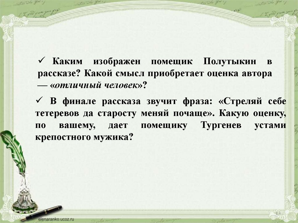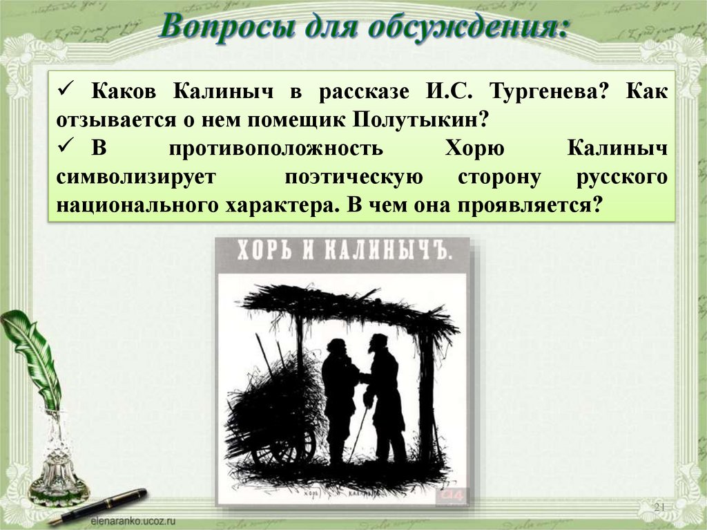 Каков Калиныч в рассказе И.С. Тургенева? Какотзывается о нем помещик Полутыкин?