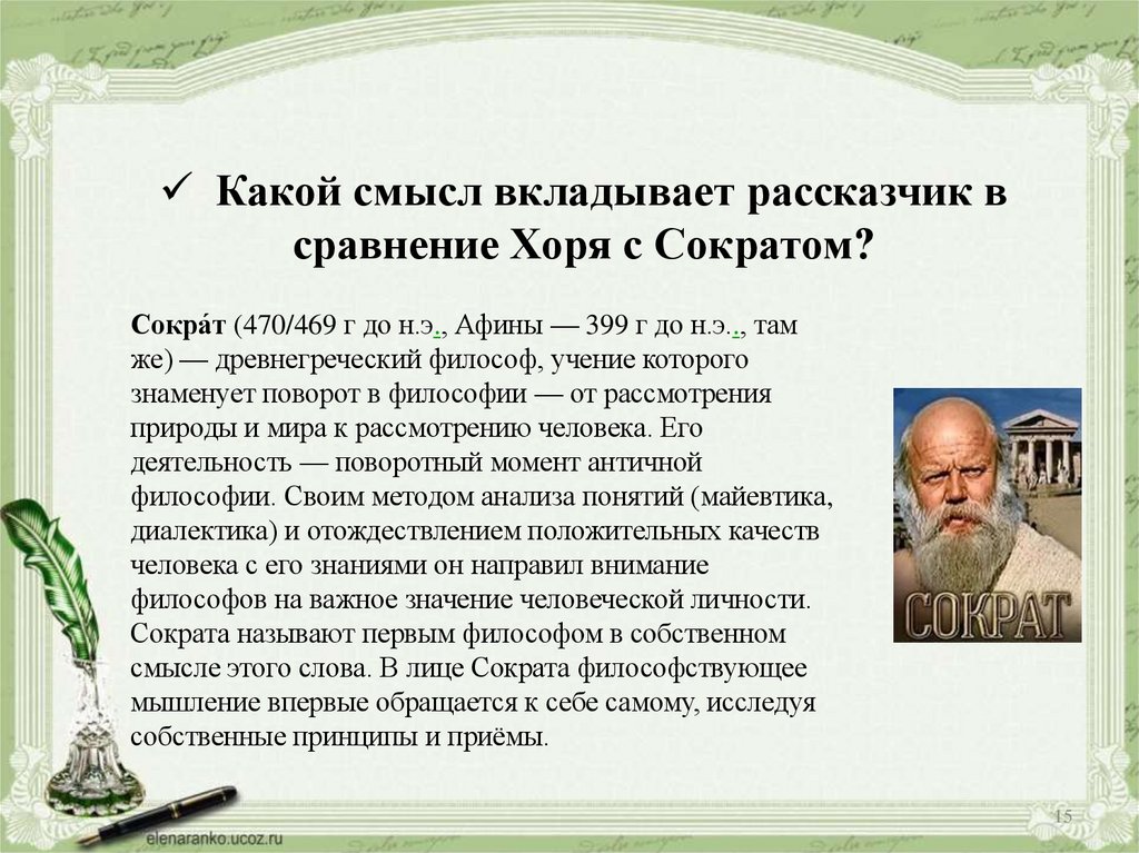 В «Записках охотника» в образе Хоря нашел отражениеопределенный