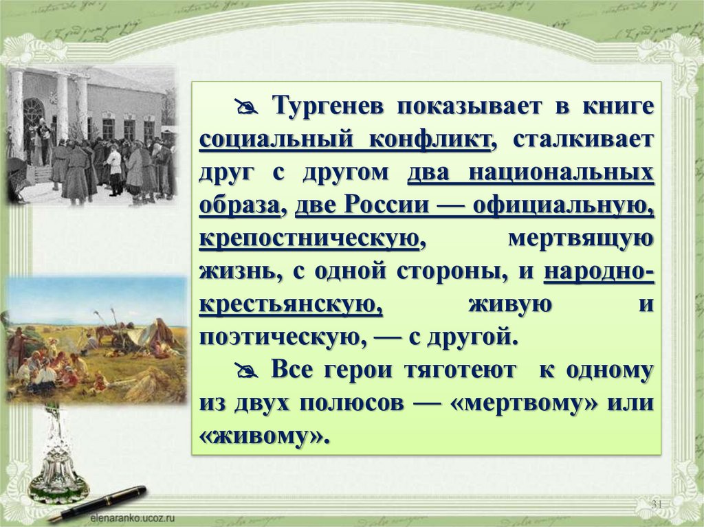 Тургенев показывает в книгесоциальный конфликт, сталкивает