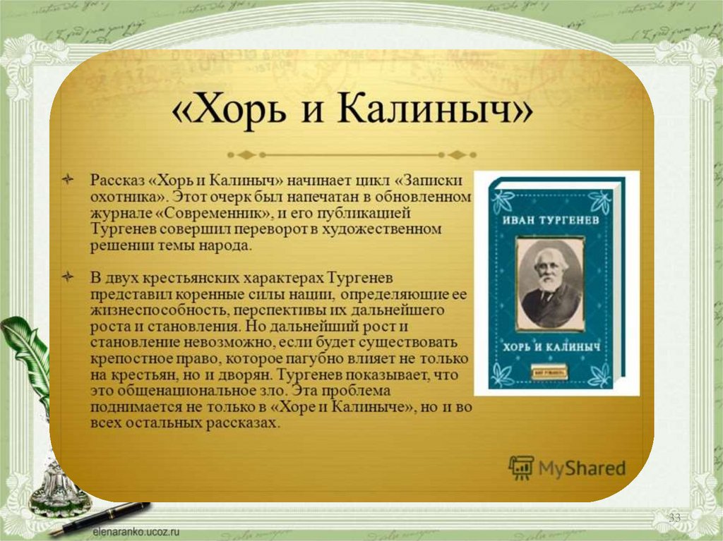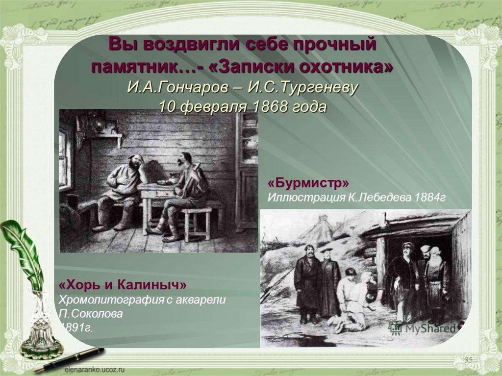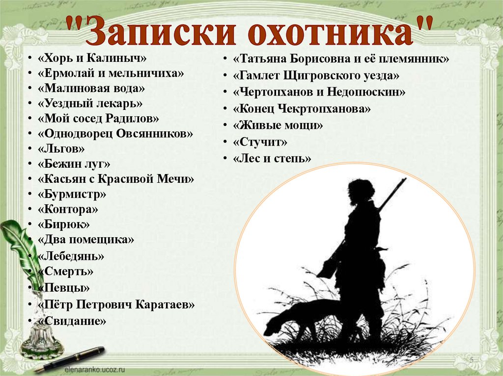 • «Хорь и Калиныч»• «Ермолай и мельничиха»