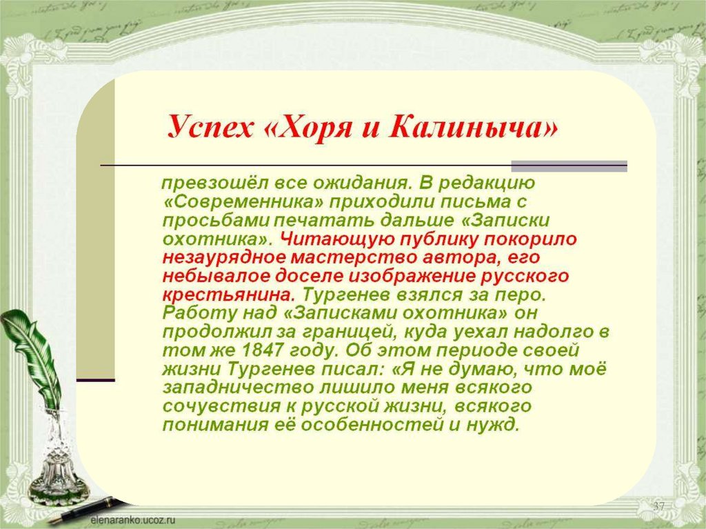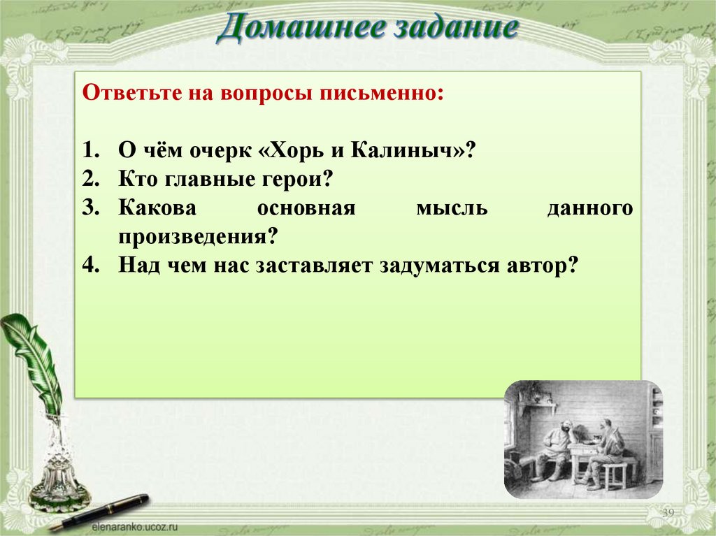 Ответьте на вопросы письменно:1. О чём очерк «Хорь и Калиныч»?