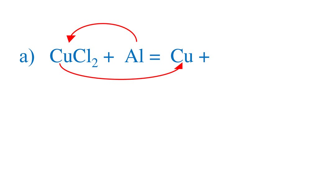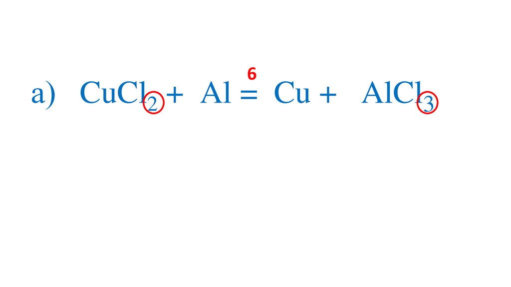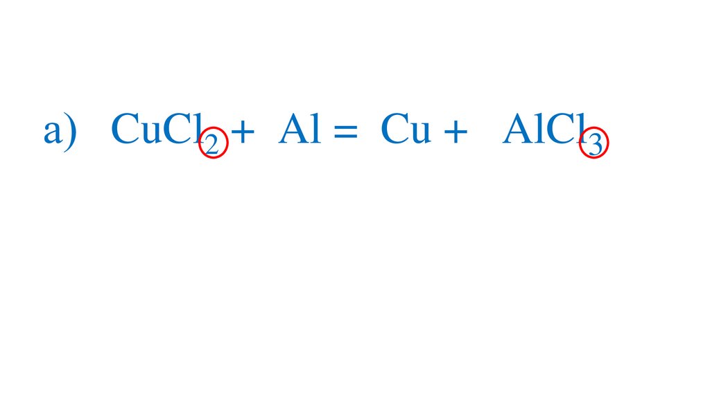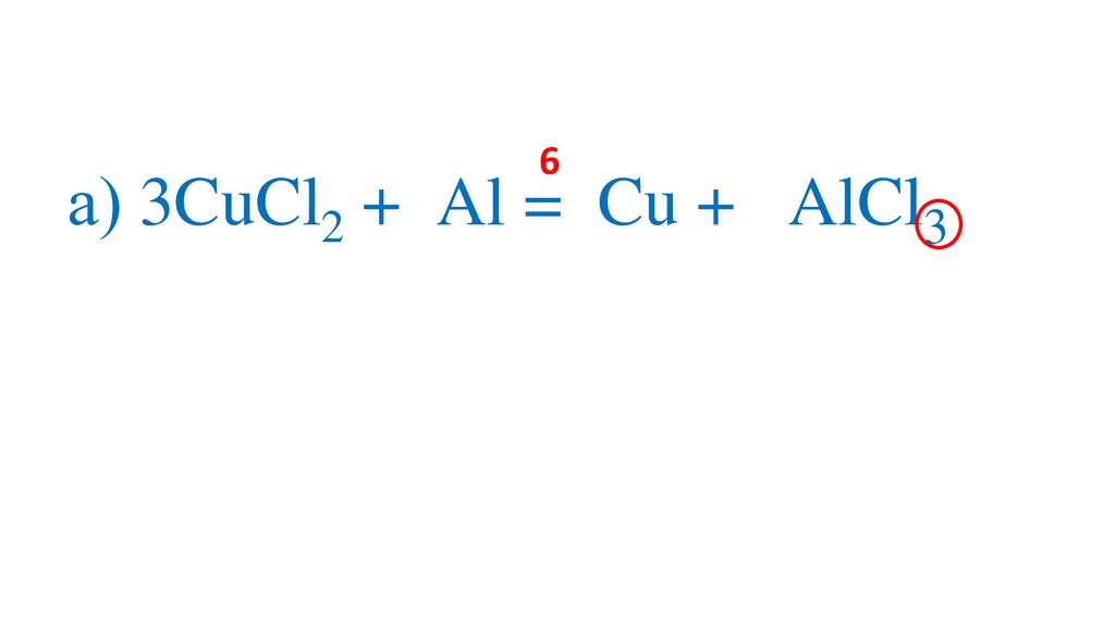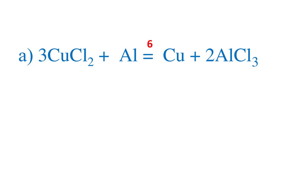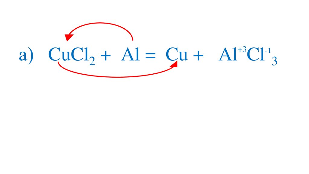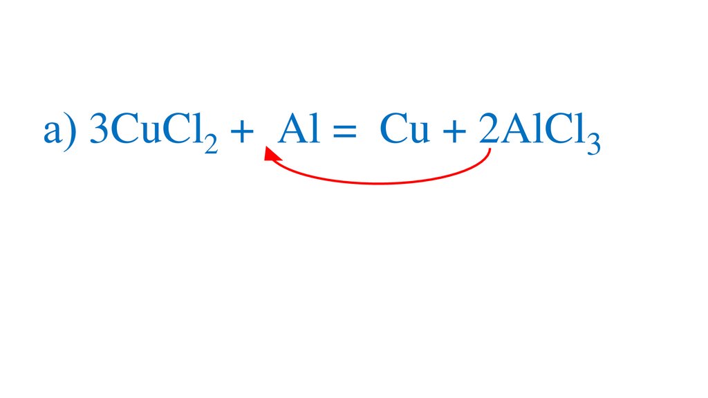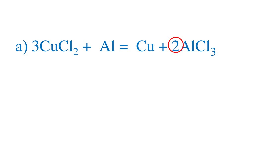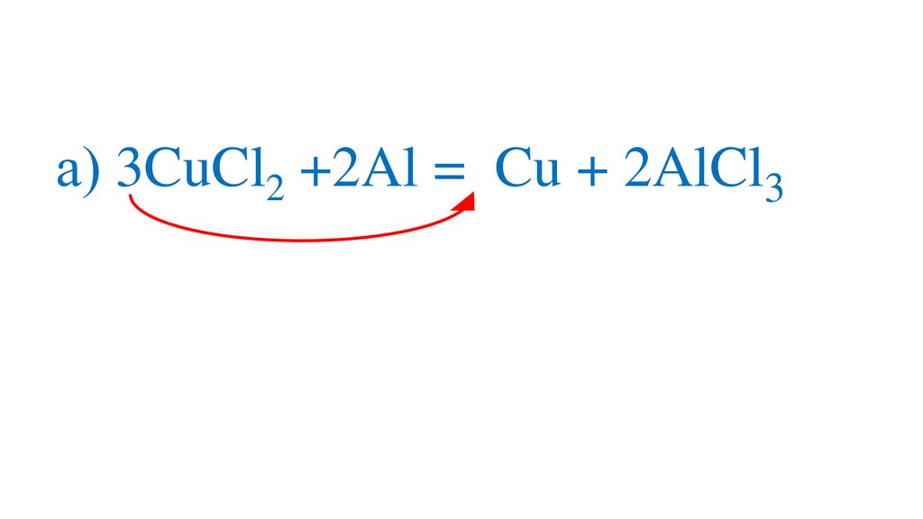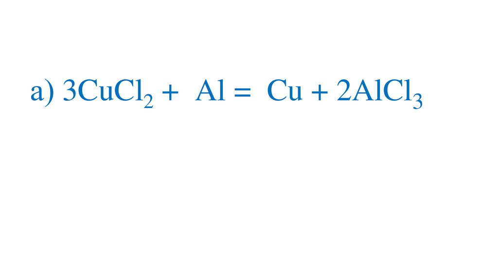 а) 3CuCl2 +2Al =3Cu + 2Al Cl 3+3