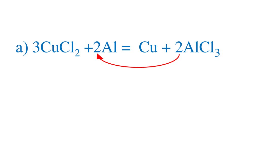 а) 3CuCl2 +2Al =3Cu + 2AlCl39.
