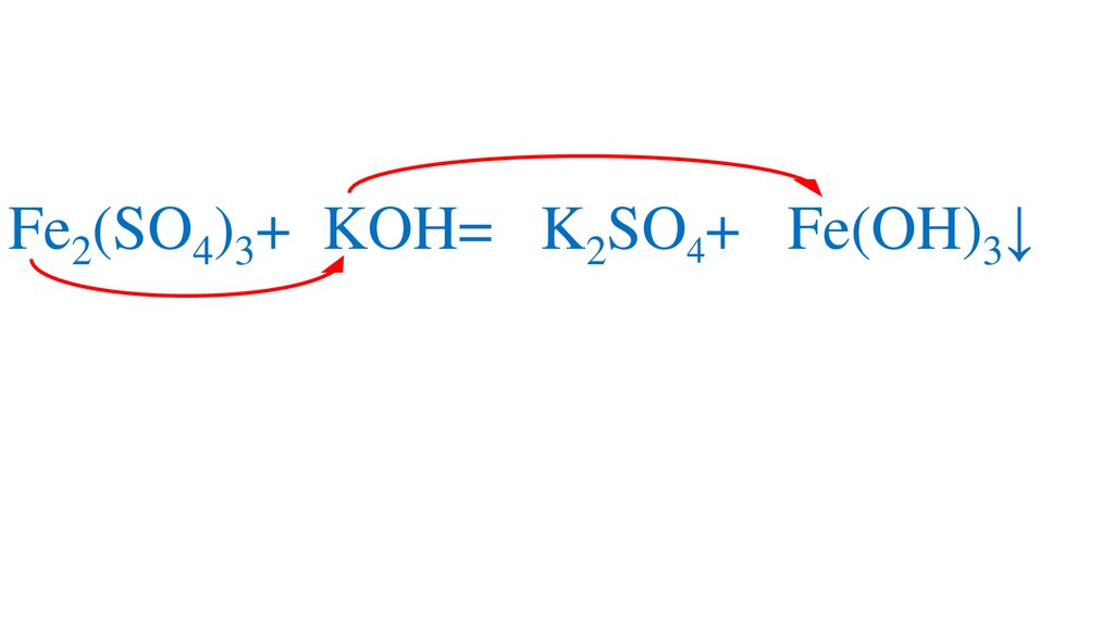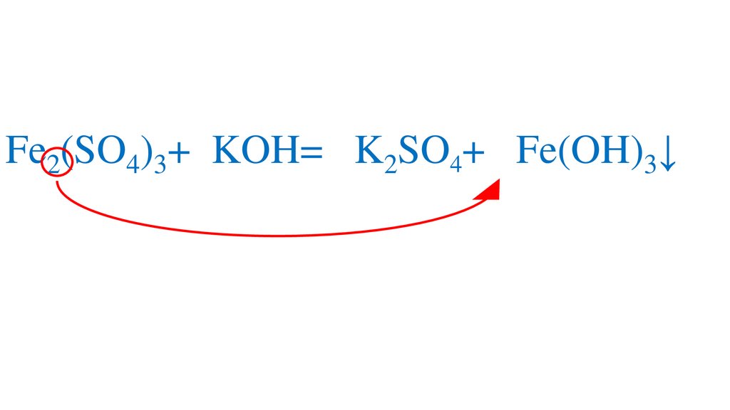 Fe2(SO4)3+6KOH= 3K2SO4+ 2Fe(OH)39.