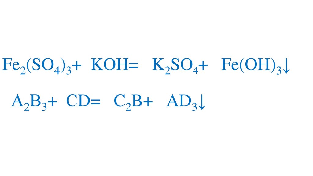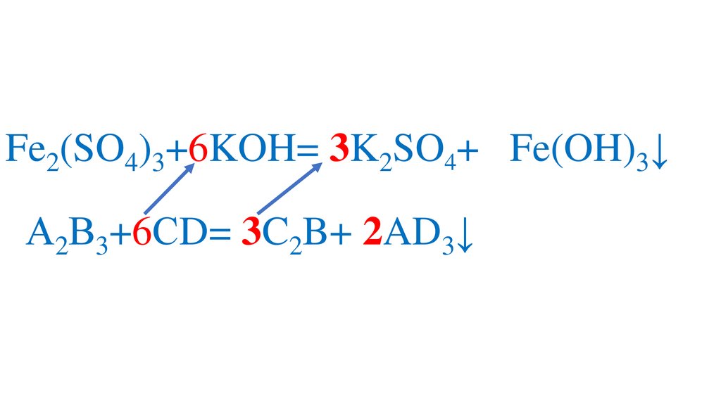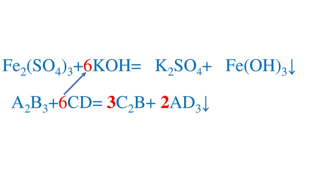 Fe2(SO4)3+6KOH= 3K2SO4+ 2Fe(OH)3↓А2В3+6СD= 3C2B+ 2AD3↓