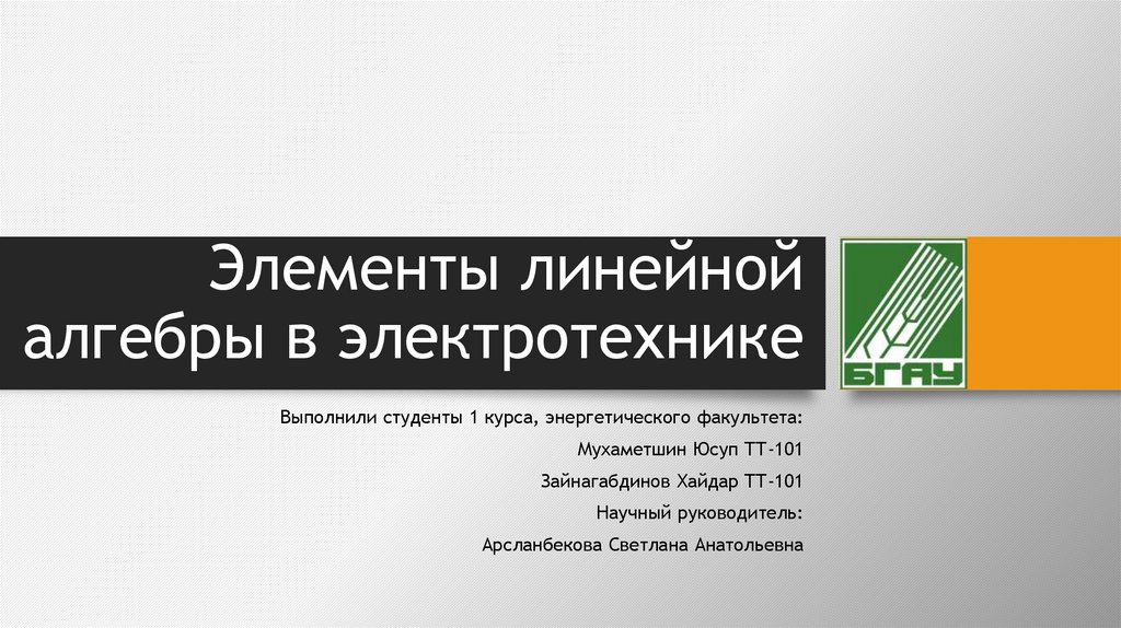 Изучить возможность применения элементовлинейной алгебры к решению задач электротехники,