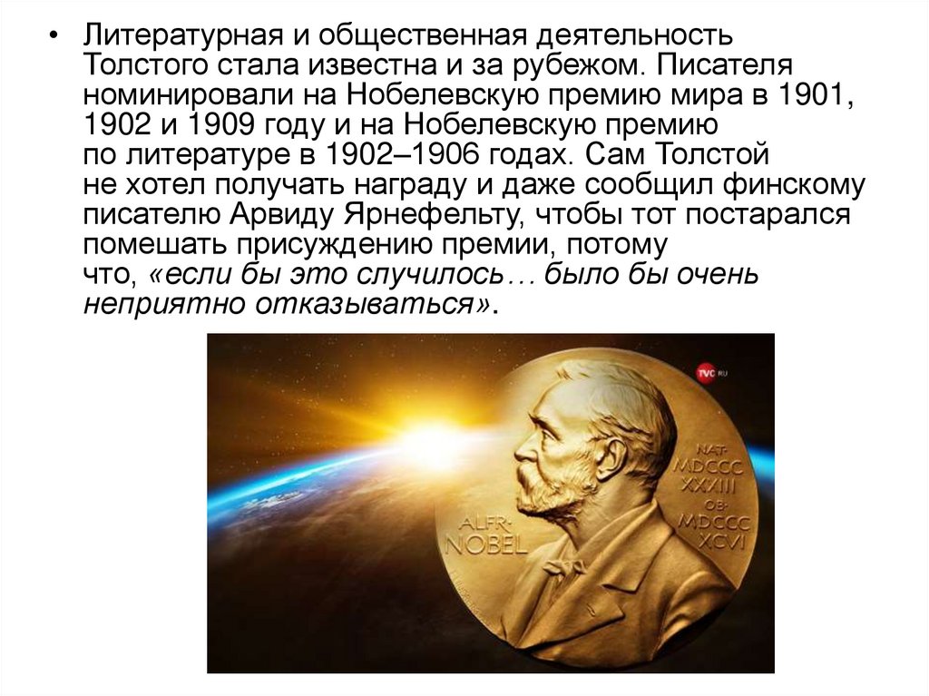 • Литературная и общественная деятельностьТолстого стала известна и за рубежом. Писателя
