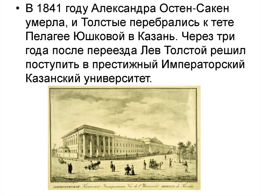 • В 1841 году Александра Остен-Сакенумерла, и Толстые перебрались к тете