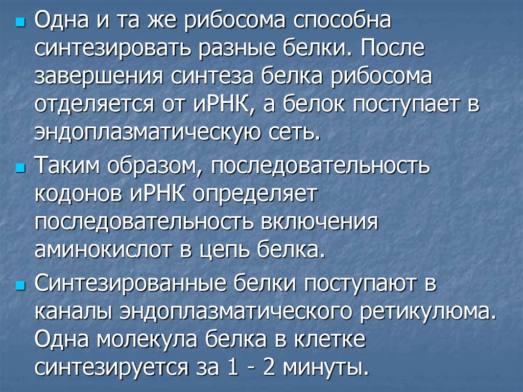 Одна и та же рибосома способнасинтезировать разные белки. После