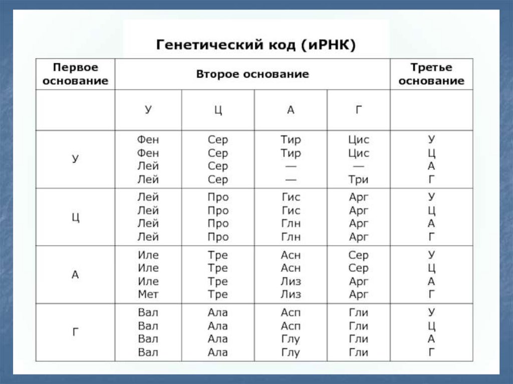 аминокислот в молекуле белка.СВОЙСТВА ГЕНЕТИЧЕСКОГО КОДА