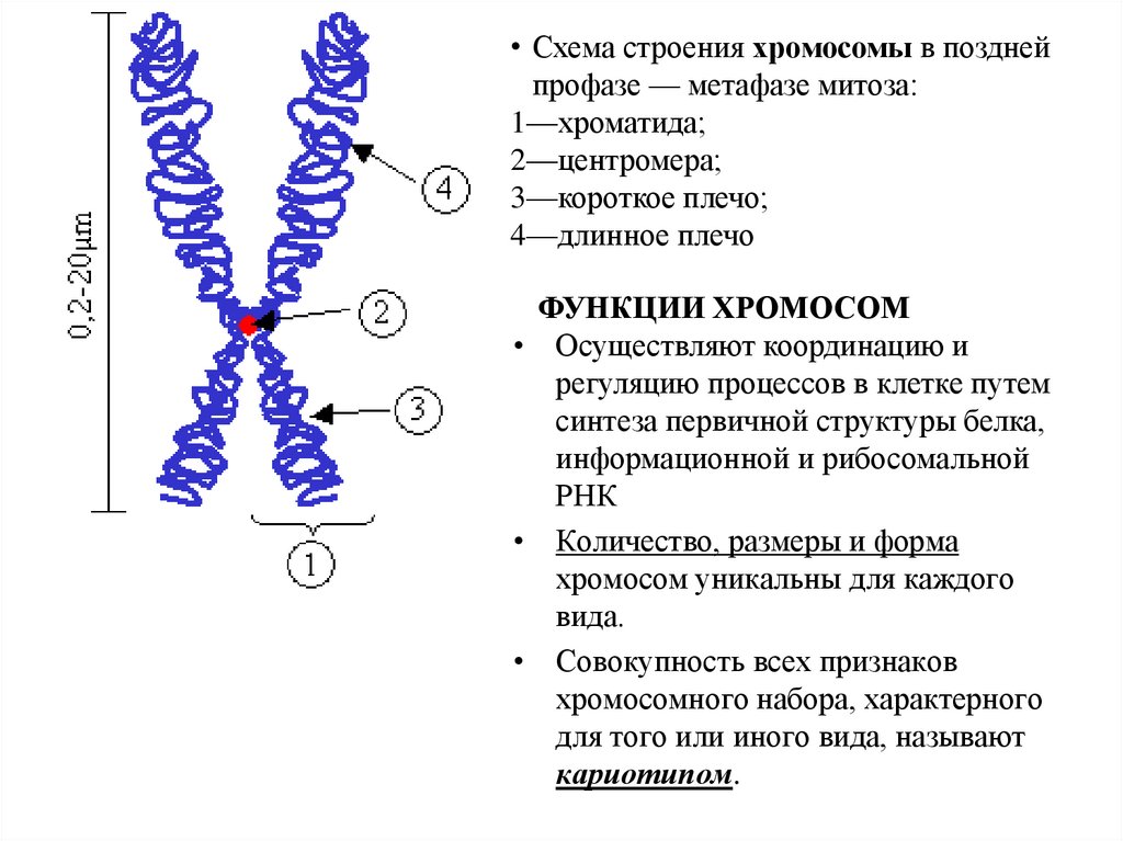 • Схема строения хромосомы в позднейпрофазе — метафазе митоза: