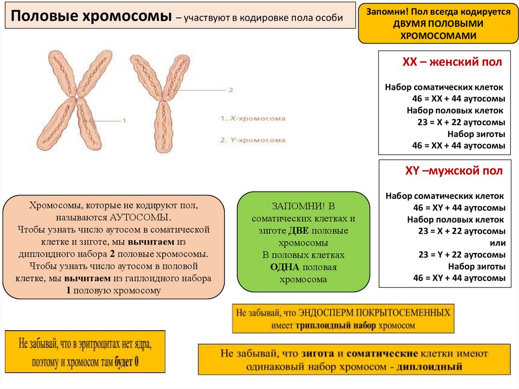 Половые хромосомы – участвуют в кодировке пола особиЗапомни! Пол всегда кодируется