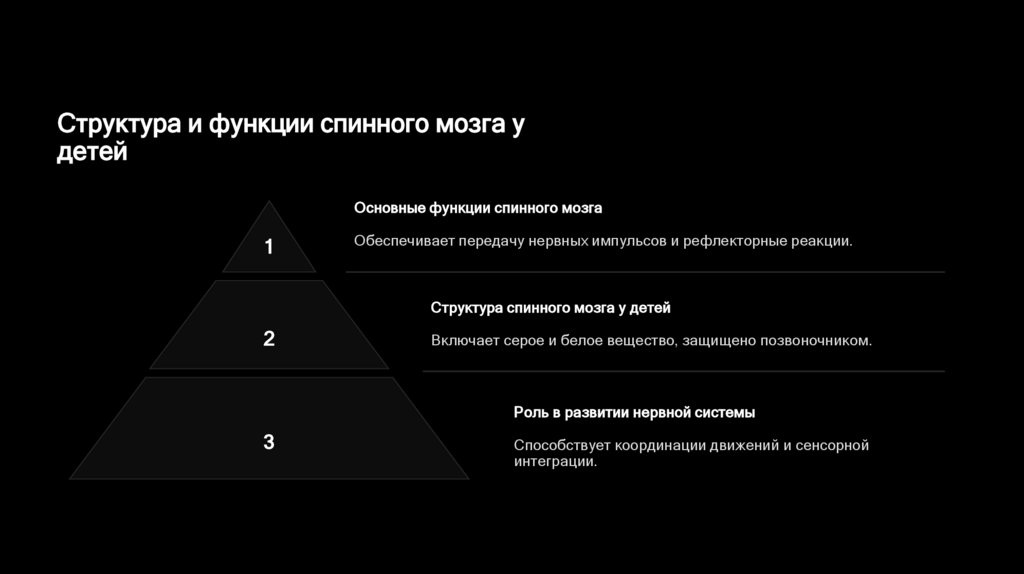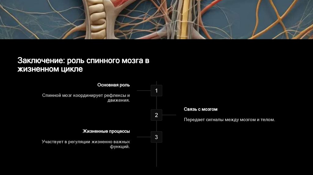 Обеспечивает передачу нервных импульсов и рефлекторные реакции.