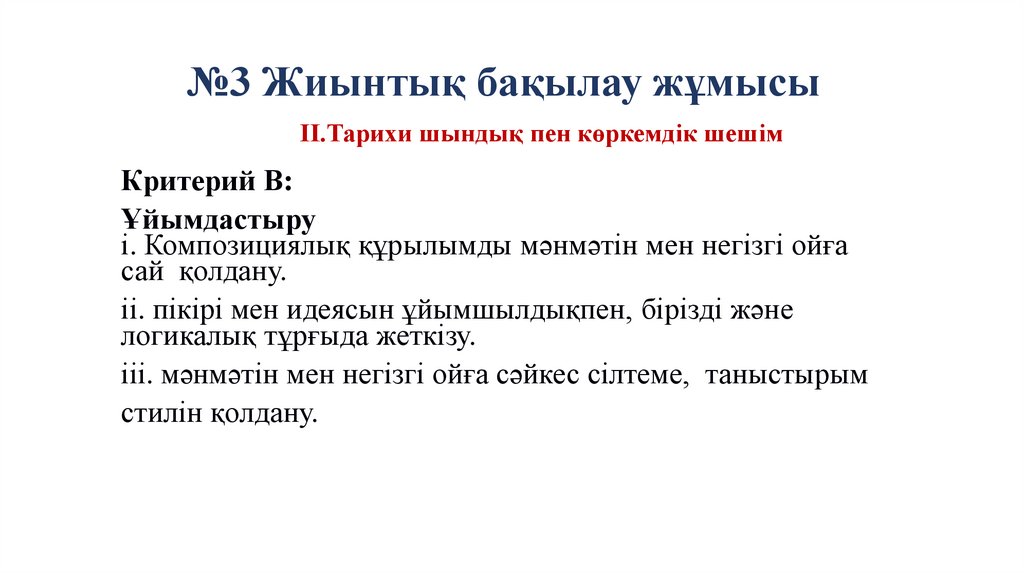 №3 Жиынтық бақылау жұмысыІІ.Тарихи шындық пен көркемдік шешім