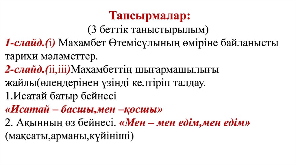 2-слайд.(іі,ііі)Махамбеттің шығармашылығы