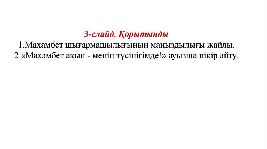 3-слайд. Қорытынды1.Махамбет шығармашылығының маңыздылығы жайлы.