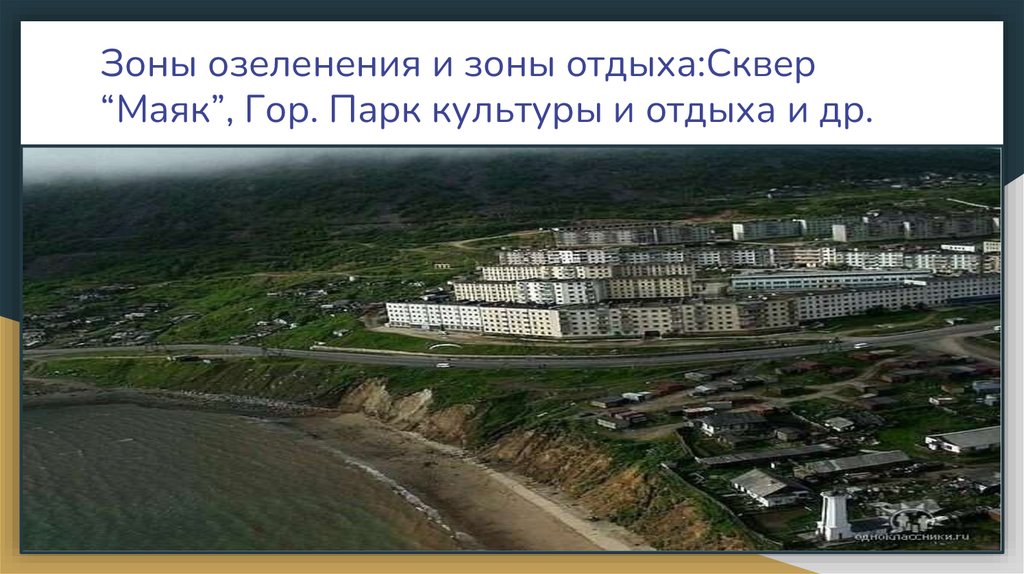 Зоны озеленения и зоны отдыха:Сквер“Маяк”, Гор. Парк культуры и отдыха и др.