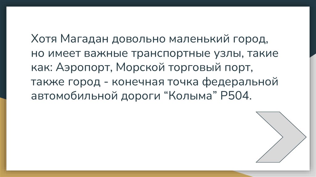 Хотя Магадан довольно маленький город,но имеет важные транспортные узлы, такие