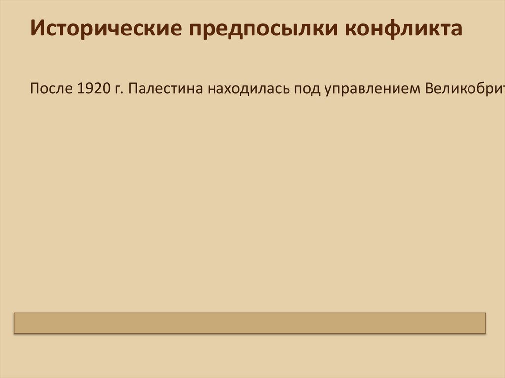 Исторические предпосылки конфликтаПосле 1920 г. Палестина находилась под управлением Великобрит