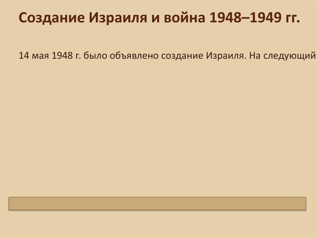 Создание Израиля и война 1948–1949 гг.14 мая 1948 г. было объявлено создание Израиля. На следующий д