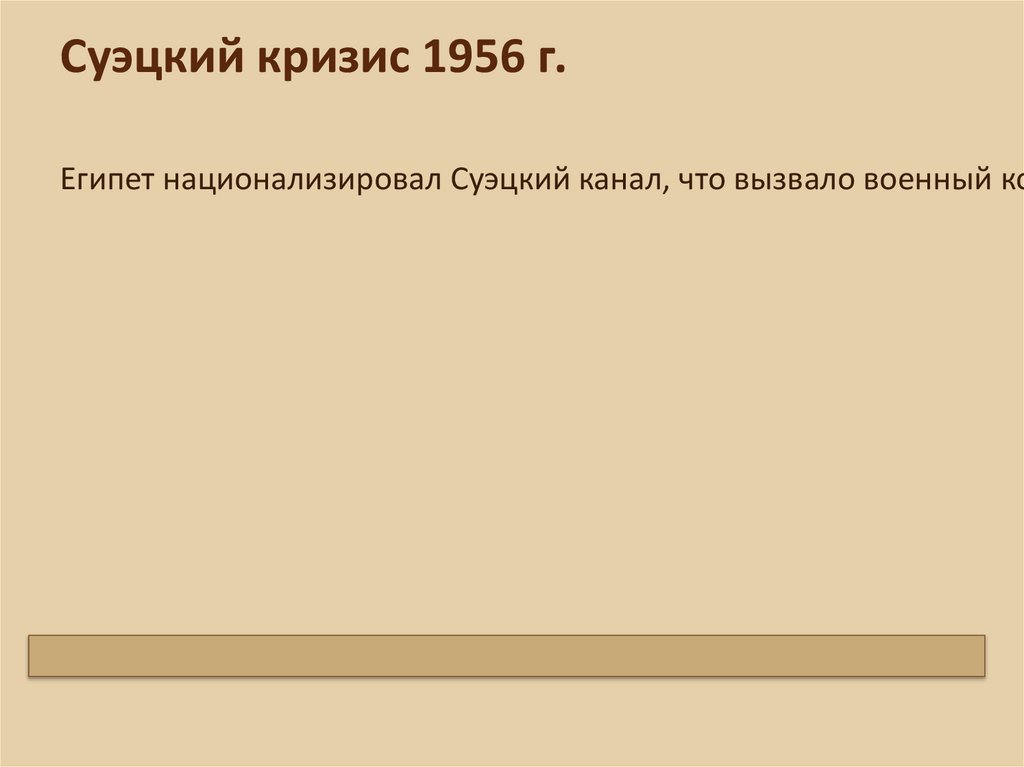 Суэцкий кризис 1956 г.Египет национализировал Суэцкий канал, что вызвало военный ко