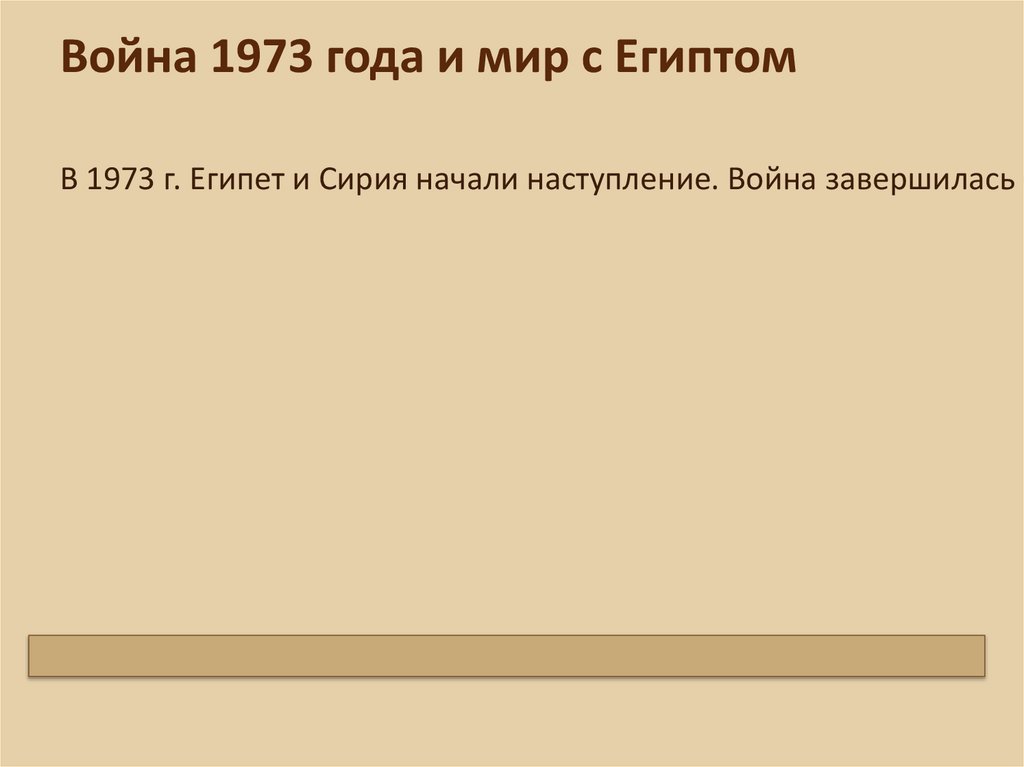 Война 1973 года и мир с ЕгиптомВ 1973 г. Египет и Сирия начали наступление. Война завершилась б