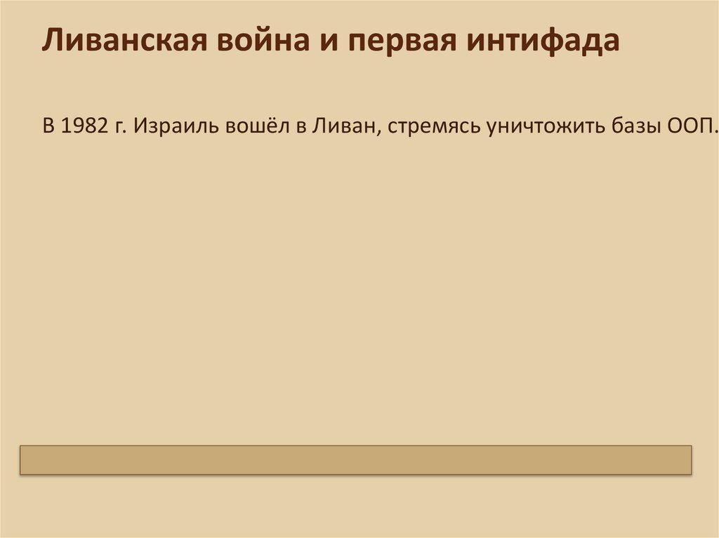 Ливанская война и первая интифадаВ 1982 г. Израиль вошёл в Ливан, стремясь уничтожить базы ООП.