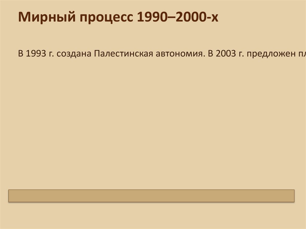 Мирный процесс 1990–2000-хВ 1993 г. создана Палестинская автономия. В 2003 г. предложен пл