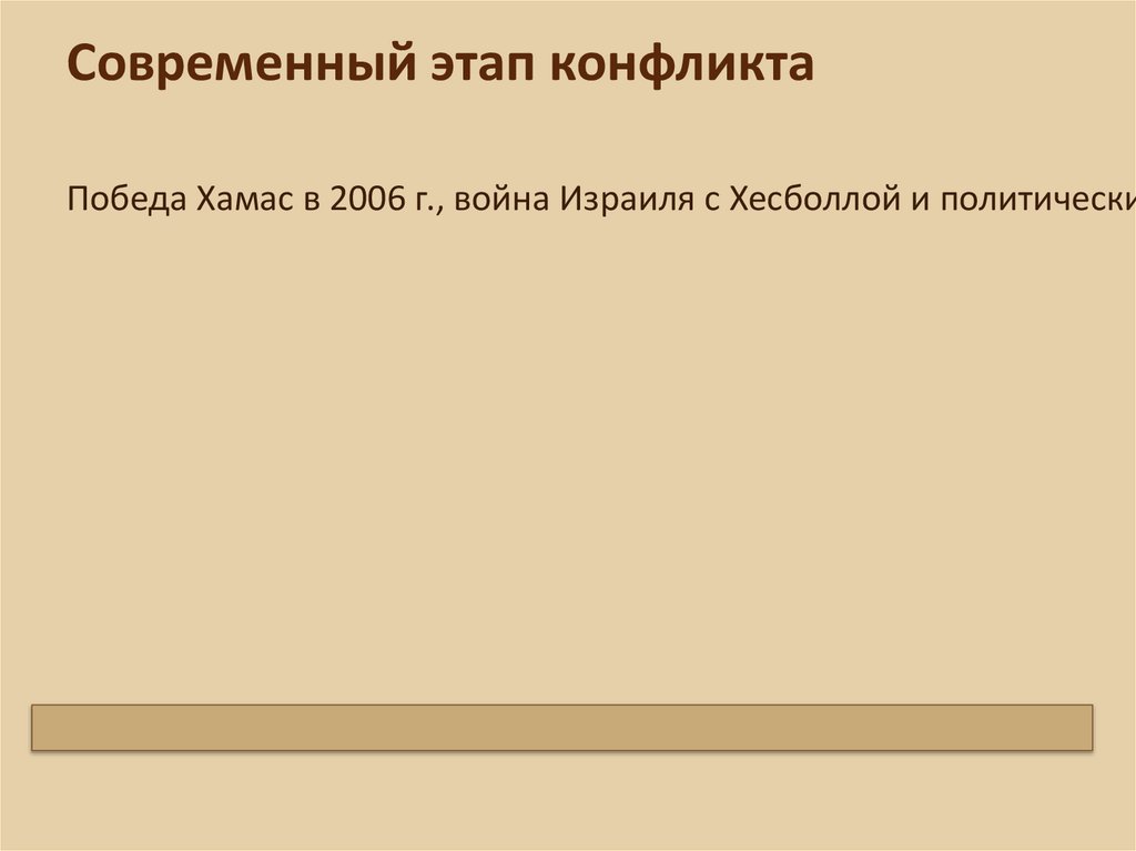 Современный этап конфликтаПобеда Хамас в 2006 г., война Израиля с Хесболлой и политически
