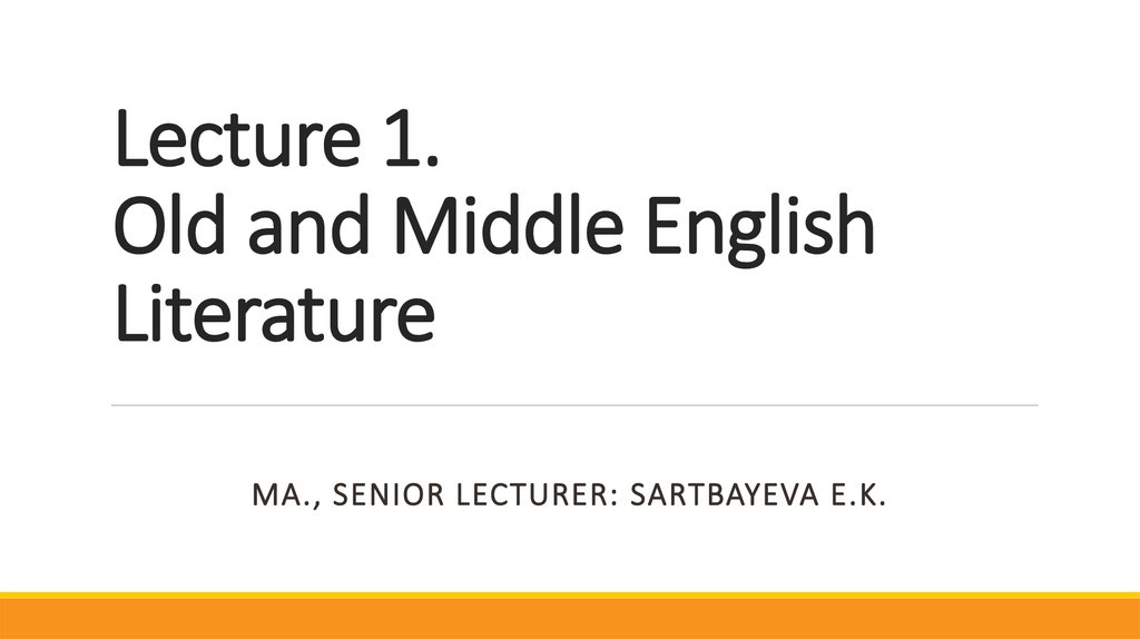 MA., SENIOR LECTURER: SARTBAYEVA E.K.2. Lecture 1. Old and Middle English Literature