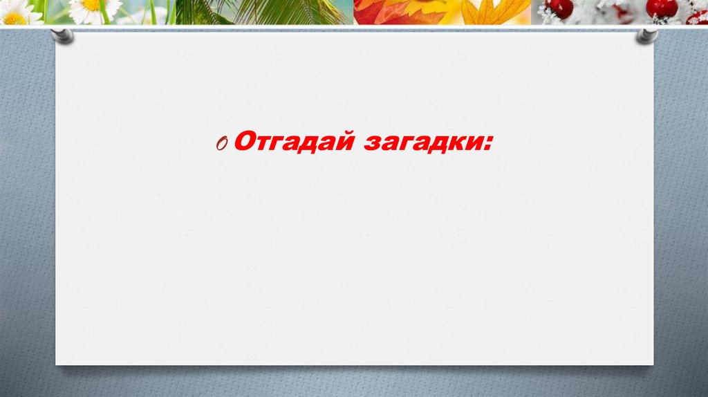 O Отгадай загадки:3. Если все белым-бело, Белым снегом замело, И дороги, и дома — Значит к нам пришла …