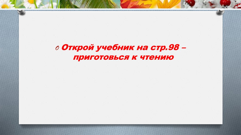 O Открой учебник на стр.98 –приготовься к чтению