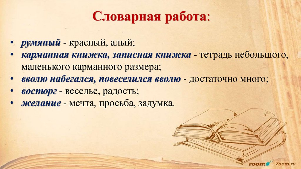 Словарная работа:• румяный - красный, алый;