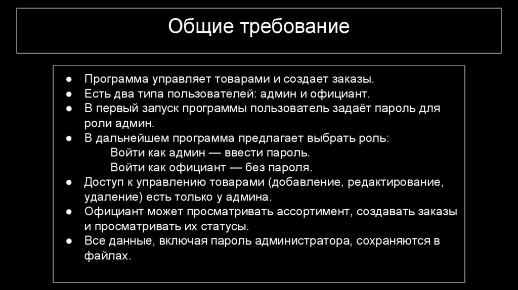Офицант выбирает товары из списка (выбирается по ID). Указывает количество.