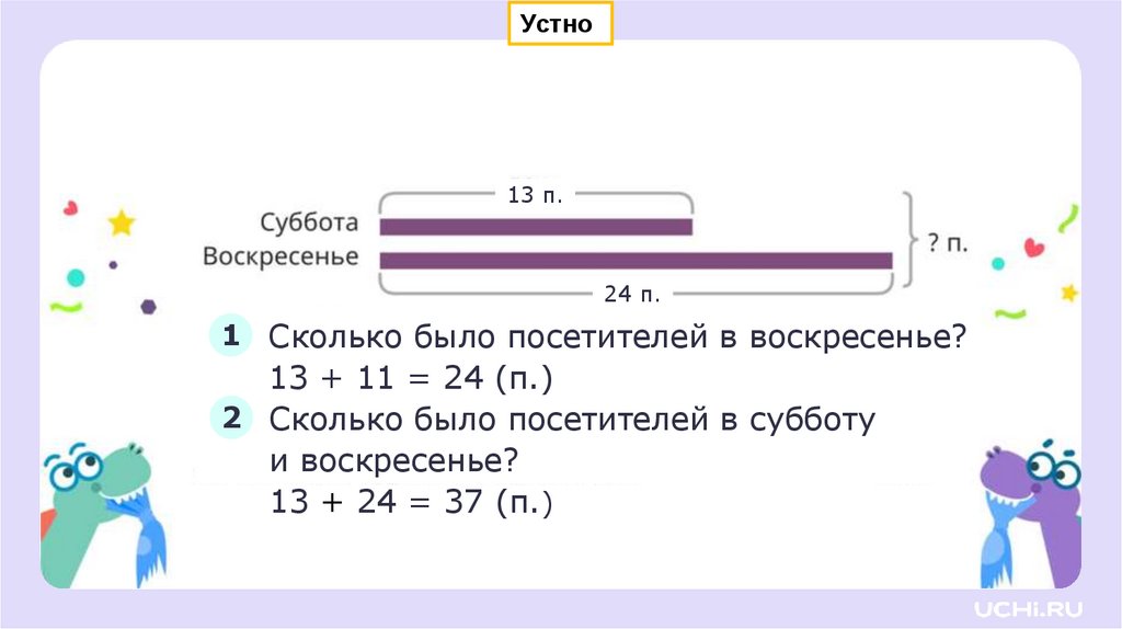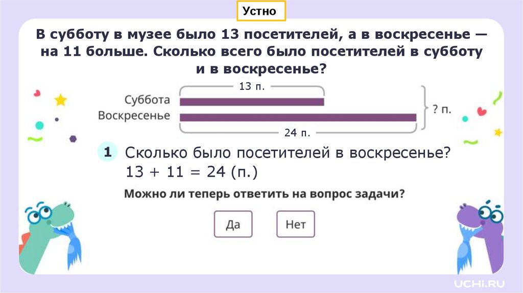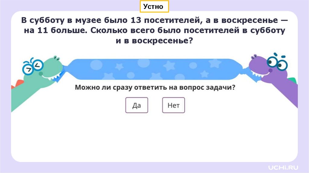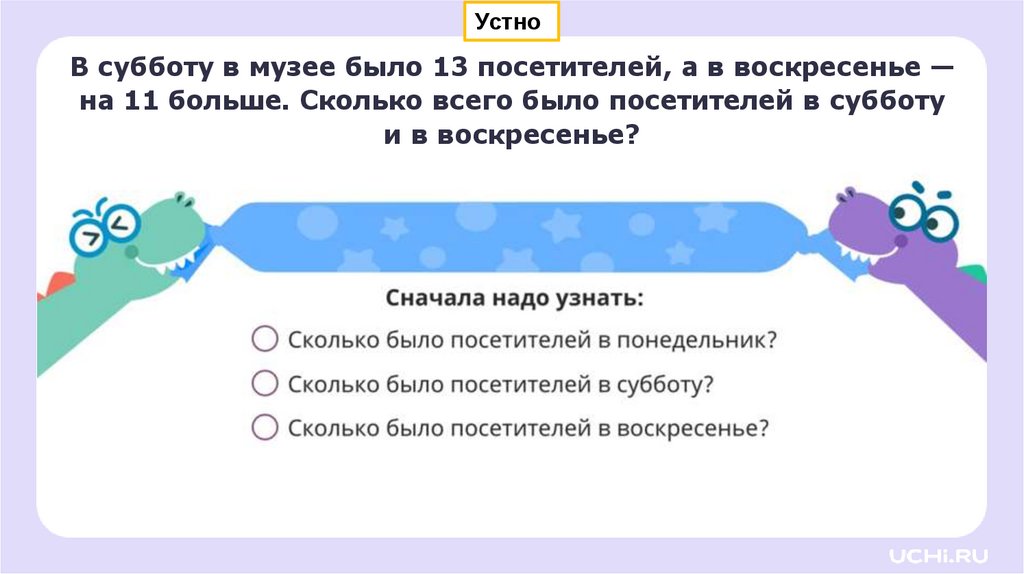 УстноВ субботу в музее было 13 посетителей, а в воскресенье —