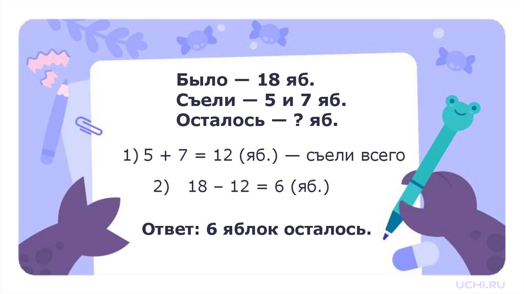 Математика, 2 класс, Оформление решения задачи (по вопросам, по действиям с пояснение
