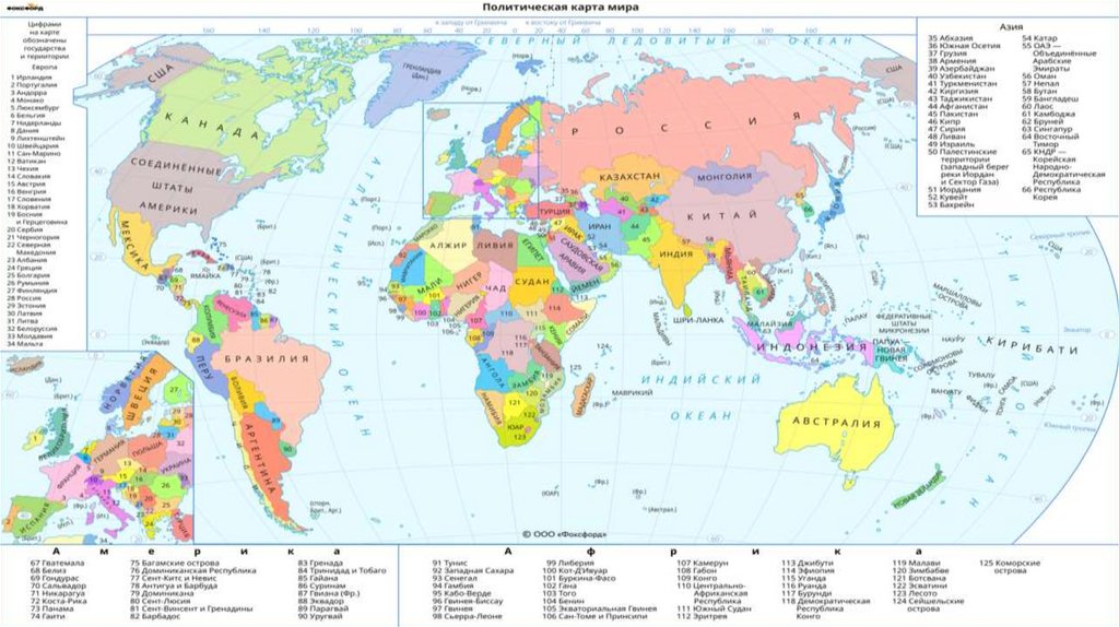 карте мира, включая распад СССР и Югославии. Углубление международной интеграции и