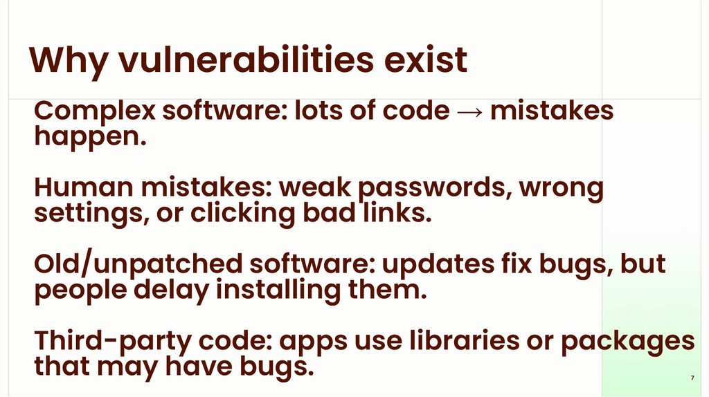 Why vulnerabilities existComplex software: lots of code → mistakes