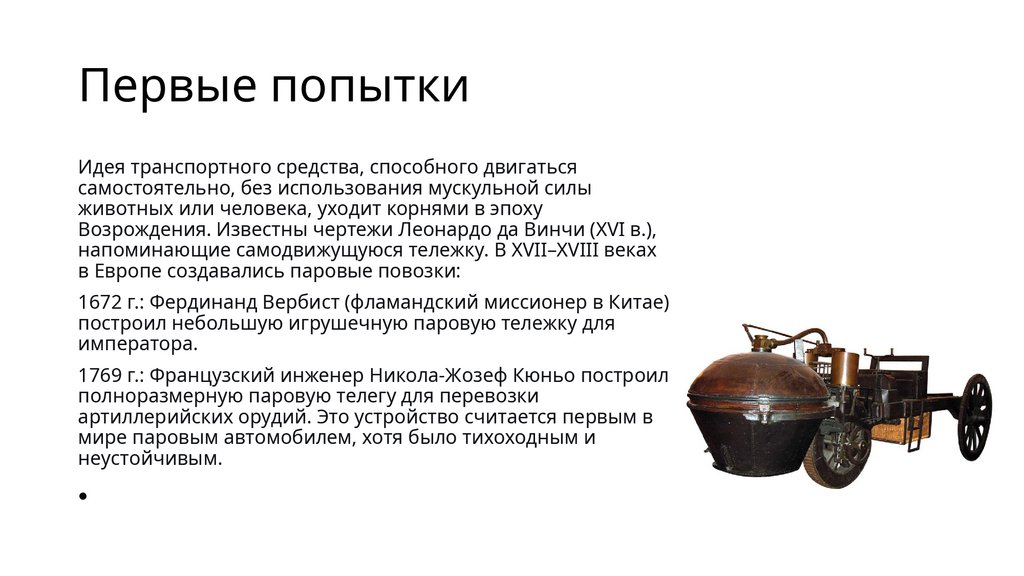 1769 г.: Французский инженер Никола-Жозеф Кюньо построил