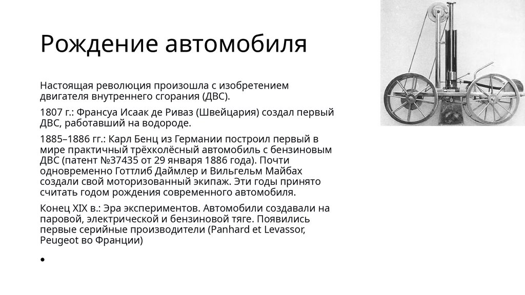 Рождение автомобиляНастоящая революция произошла с изобретением