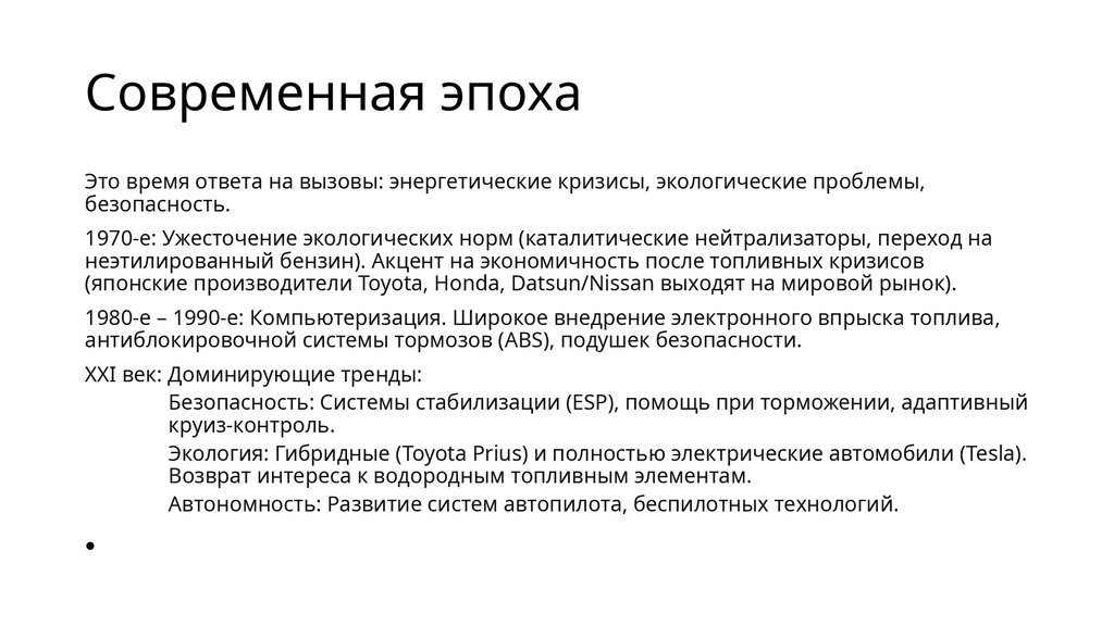 1980-е – 1990-е: Компьютеризация. Широкое внедрение электронного впрыска топлива,