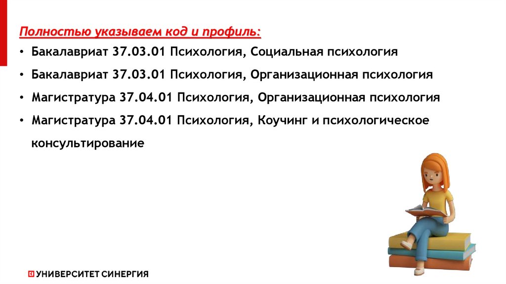 Полностью указываем код и профиль:• Бакалавриат 37.03.01 Психология, Социальная психология