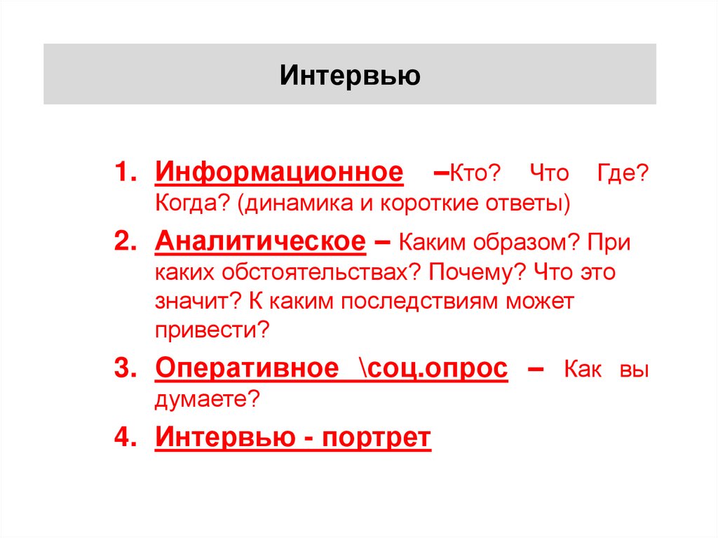 Основы ИНТЕРВЬЮ-ПОРТРЕТ