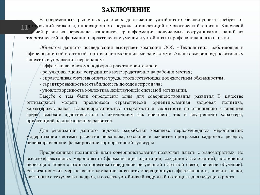 ЗАКЛЮЧЕНИЕВ современных рыночных условиях достижение устойчивого бизнес-успеха требует от